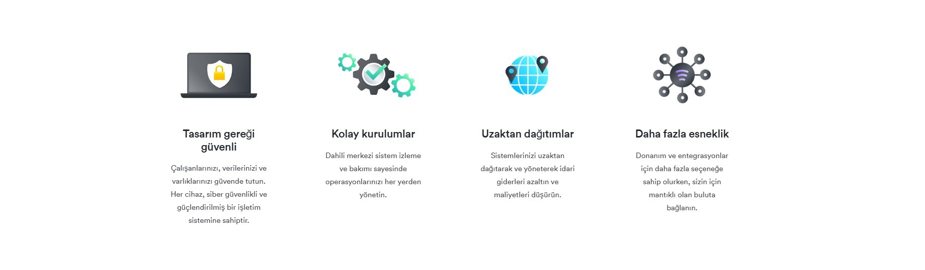 | Ağ izolasyonu ve esnek hibrit depolama ile daha küçük dağıtımlar için verimli veri yönetimi sunar ve minimum donanım gereksinimleriyle güvenli ve ölçeklenebilir güvenlik sağlar. |